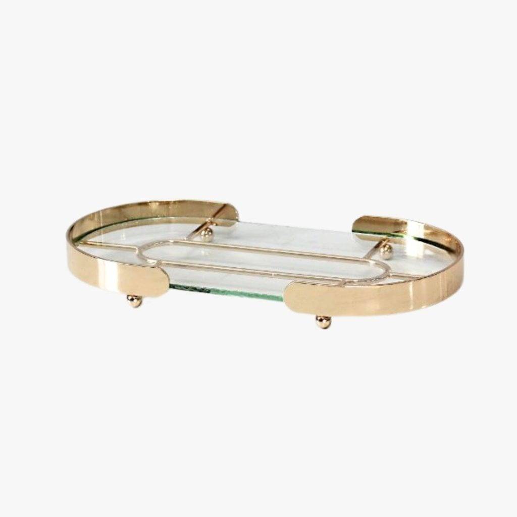 Bandeja Oval Dourada c/ Vidro 30C X 15L X 3A