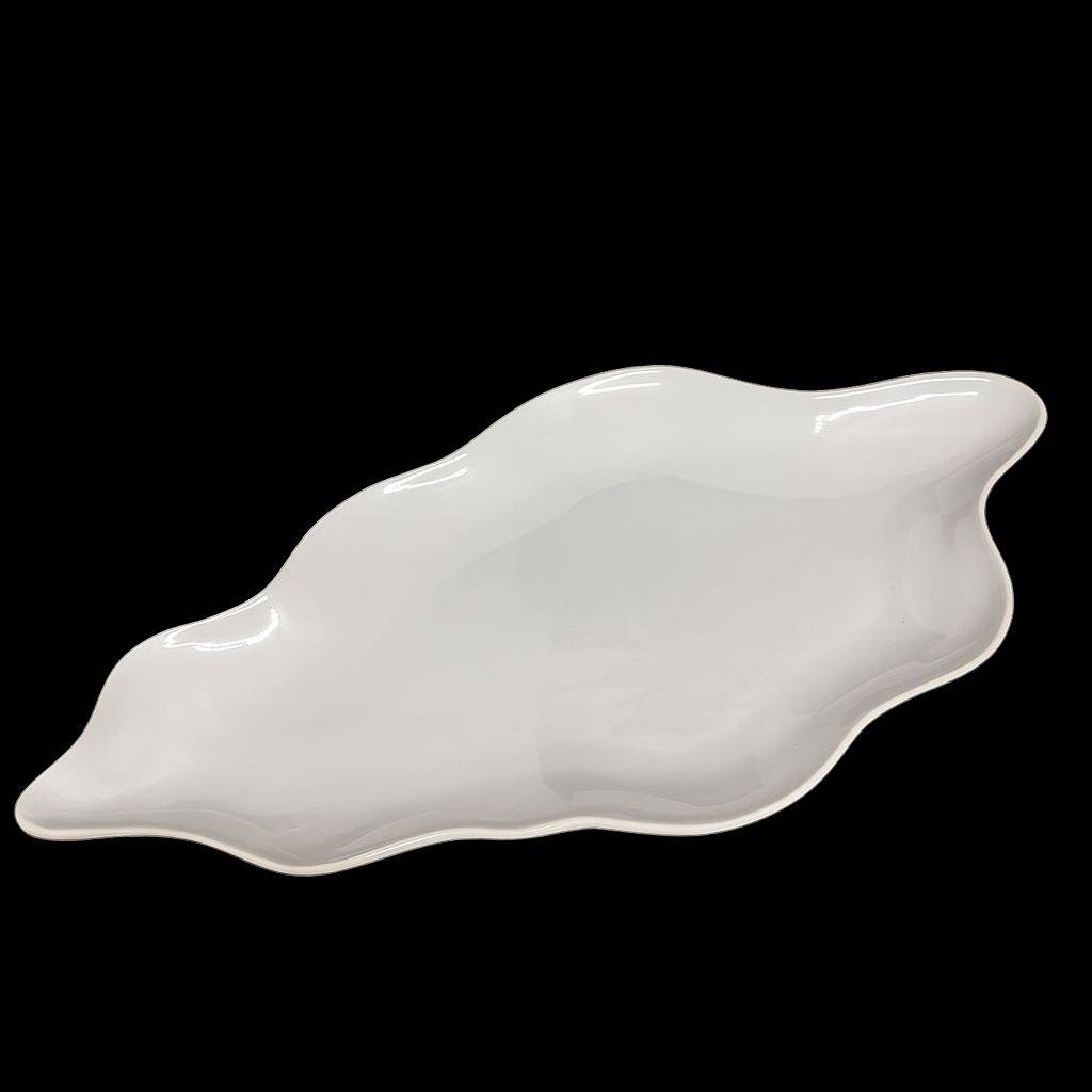Travessa Folha Ceramica irregular Bege 52Cx28Lx3A
